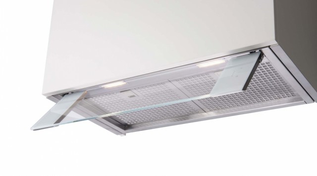 Fortuna kombinerer design og funksjon perfekt. Når ventilatoren ikke er i bruk vippes glasset inn, og ventilatoren blir helt borte. Touch panel på glasset. Monteres i skap uten bunn.